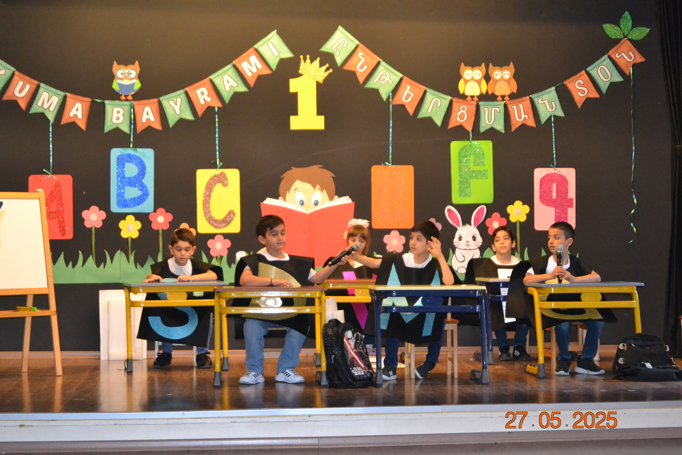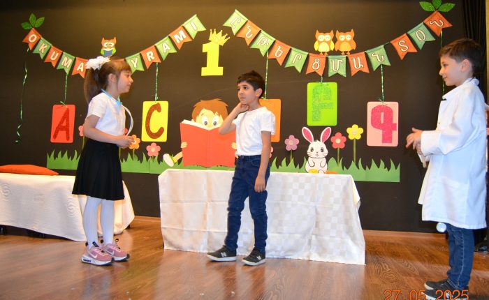 On Tuesday, May 27, 2025, our 1st grade class celebrated “Reading Day”. The ceremony started with a speech by our principal Clodya Altıparmak Demir and our students performed Armenian, Turkish and English songs, theater, dance and poems. Our students received their gifts and certificates and ended the day with treats and cakes prepared by our parents.